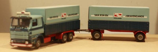 Tekno Scania bakwagen met aanhanger van Rijn b.v. s'Gravenzande